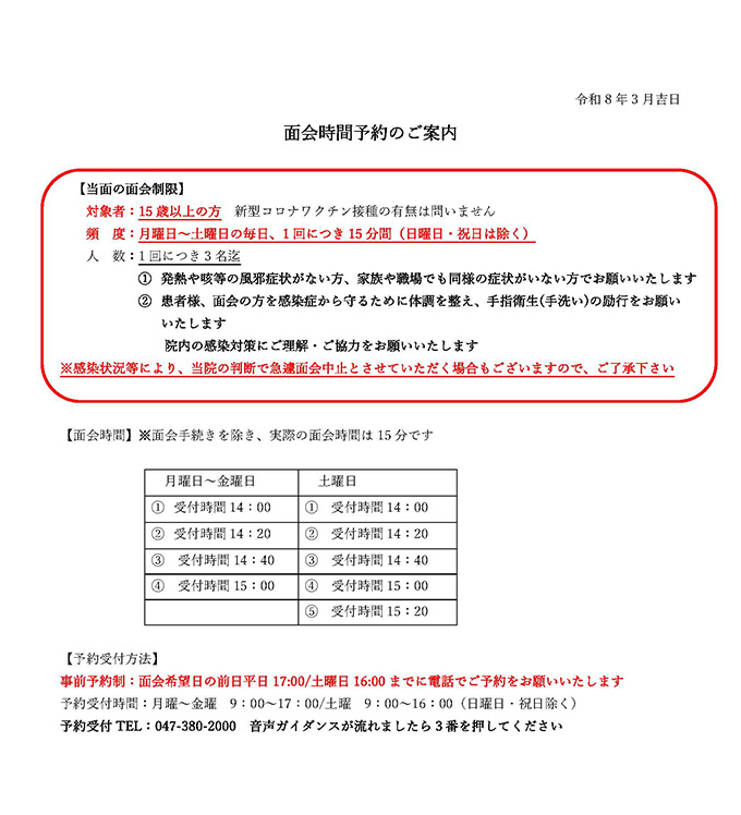 尚、今後の感染状況によっては面会を再度中止させていただく場合もございますので、
